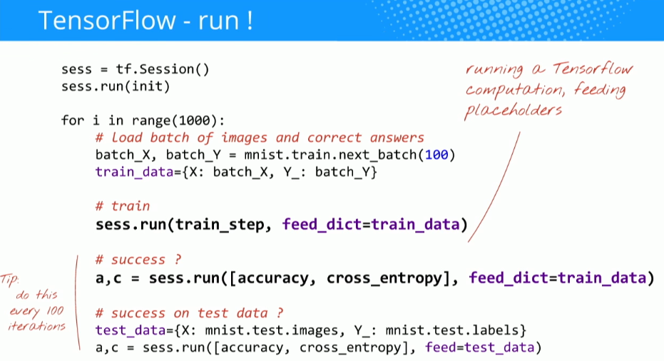 最后一行代码用于在训练回路中计算准确度和交叉熵(例如每 10 次迭代)。