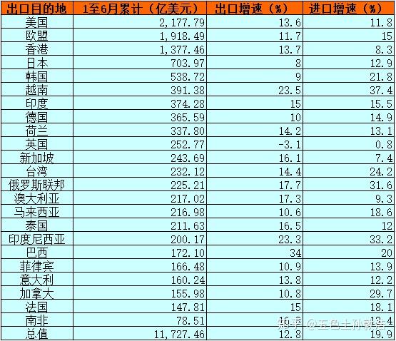 欧洲,俄罗斯法国增速最大。出口增速和进口增速看,俄罗斯17.7%、31.6%,法国15%、18.1%。其次是荷兰。
