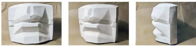 (下图) 嘴部体面三视图希望大家通过观察这三个常见角度的石膏嘴巴,从而能更好地理解透视对嘴部形体的影响。