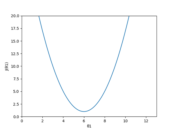 函数图是这样一个形状,数值对不上,凑合着看吧;有一点值得注意,在J(θ)中, 与