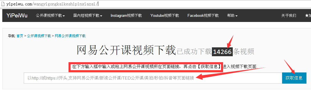 第一步:打开页面,粘上公开课页面链接,再点击【获取信息】如下图: