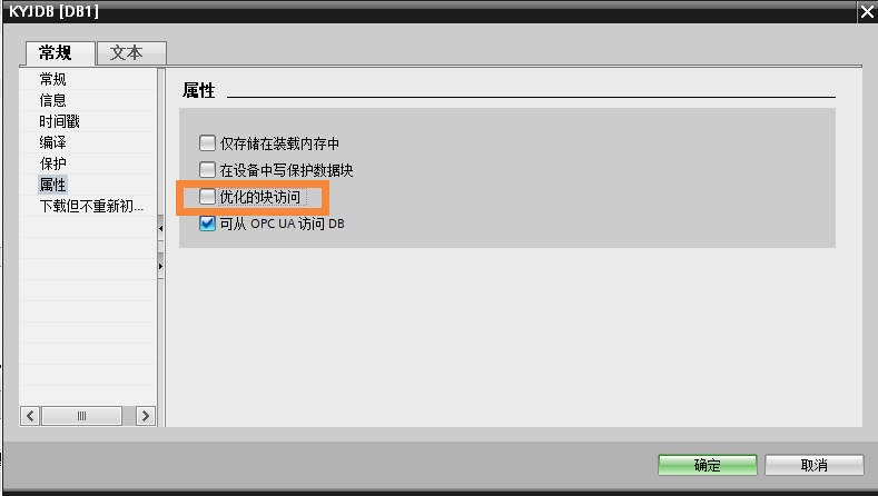 (2)如果需要访问DB块,必须将DB块属性中的优化的块访问勾选去除。