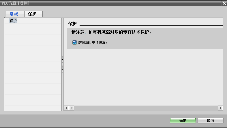(3)如果是通过PLCSIM-Advanced搭建的仿真环境,必须将整个解决方案的属性中,保护栏里的块编译时支持仿真勾选上。
