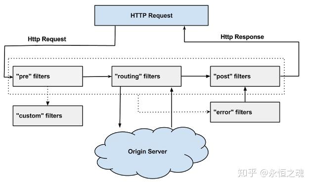 (3) POST:这种过滤器在路由到微服务以后执行。这种过滤器可用来为响应添加标准的HTTP Header、收集统计信息和指标、将响应从微服务发送给客户端等。