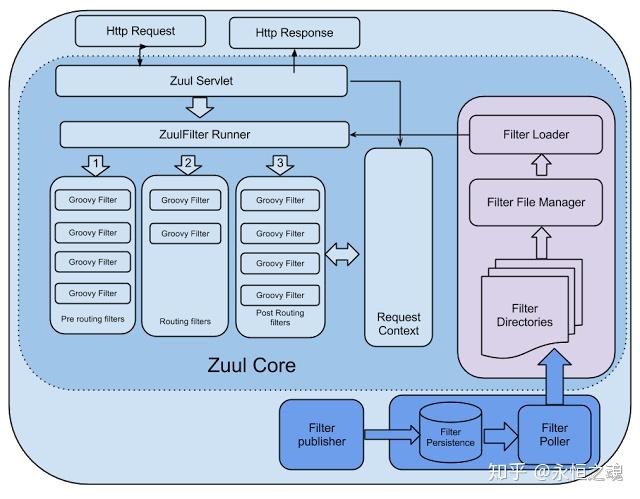 Zuul的过滤器是由Groovy写成,这些过滤器文件被放在Zuul Server上的特定目录下面,Zuul会定期轮询这些目录,修改过的过滤器会动态的加载到Zuul Server中以便过滤请求使用。