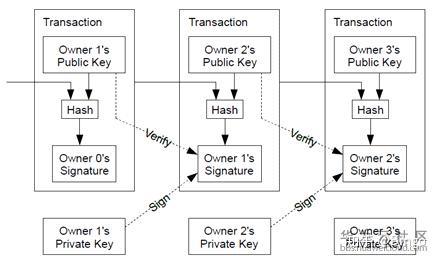 每一位电子货币所有者通过对前一次交易和货币接受者的公钥(pubilc key)签署一个hash数字签名,然后发送给下一位所有者。(1)收款人使用付款人的公钥(public key)校验,是否是正确的付款人发送(2)由于交易中有收款人的公钥,所以只有收款人使用自己的私钥才能解锁并将该货币传递下去