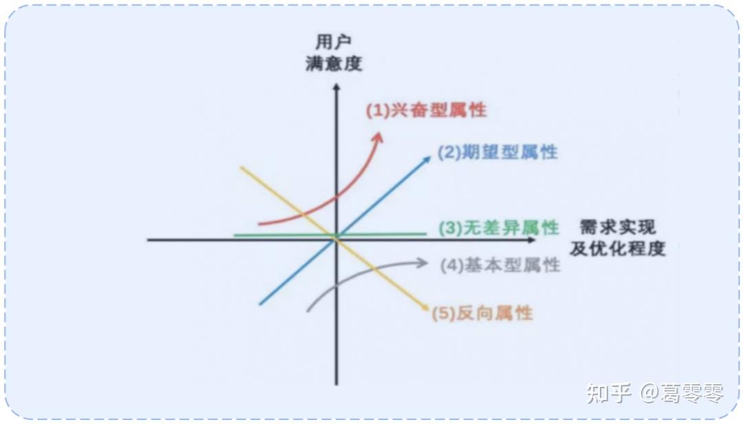 通过分析“需求实现程度”与“用户满意度”的影响,将需求分为以下5种类型: