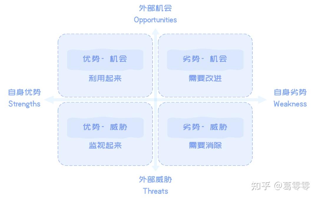 态势分析,就是将与研究对象密切相关的各种主要内部的优势(Strengths)、劣势(Weakness)和外部的机会(Opportunities)、威胁(Threats)等,依照矩阵形式排列列出,然后用系统地把各种因素相互匹配起来加以分析,从中得出一系列相应的结论。