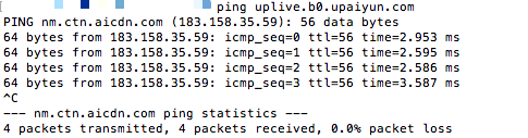 - 用户 ping 播放域名,查看解析到的服务器节点,判断自身IP 到服务器之间是否有延迟过大或者丢包的情况出现;