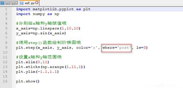 上面咱们所写程序中红色方框中的就是对阶梯图绘制函数step()进行的调用,下面咱们先对这个函数来分析一下吧: