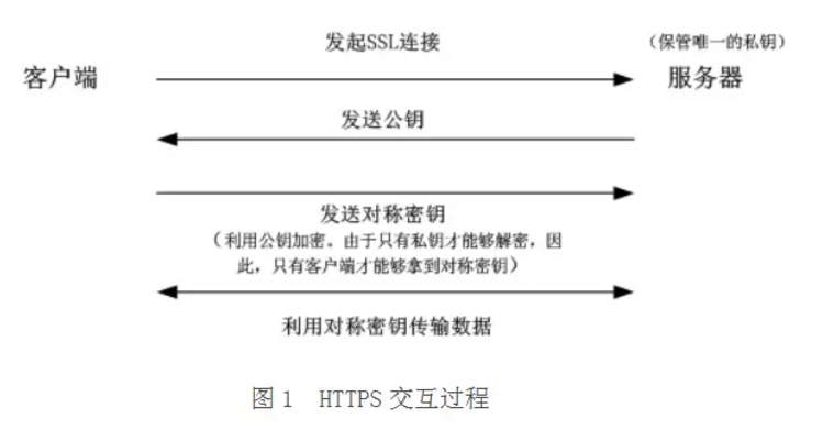 (1)首先,客户端利用CA数字证书实现身份认证,利用非对称加密协商对称密钥。