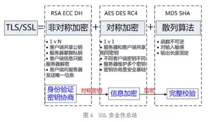 所以综合以上三点:非对称加密算法(公钥和私钥)交换对称密钥+数字证书验证身份(验证公钥是否是伪造的)+利用对称密钥加解密后续传输的数据=安全