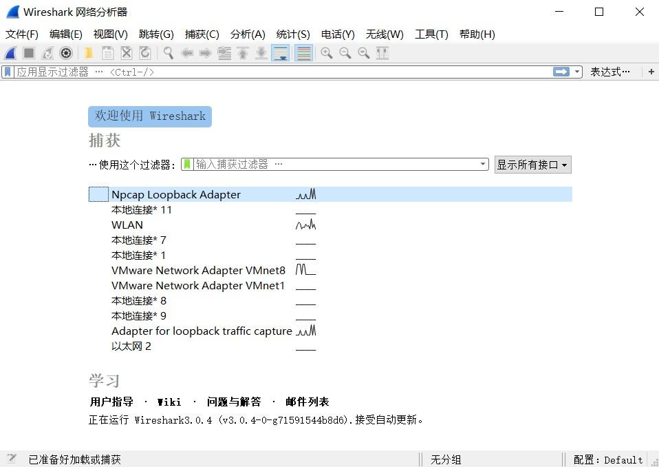 - 打开wireshark,主界面如下: