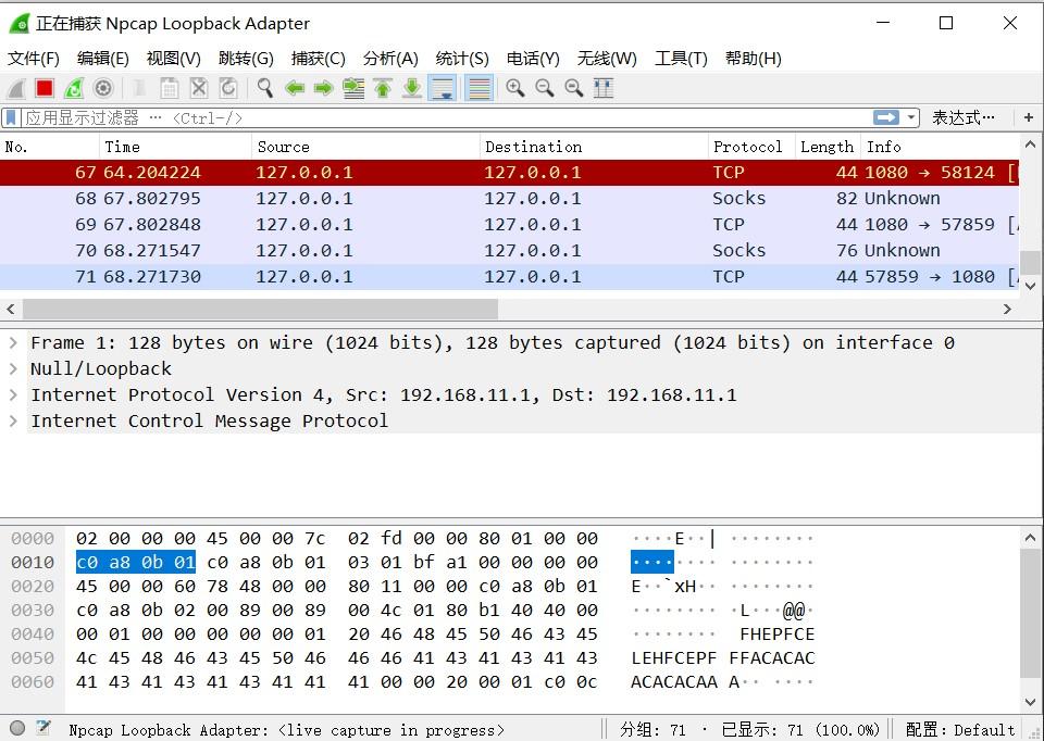 3. 此时wireshark已经开始工作,查看抓包