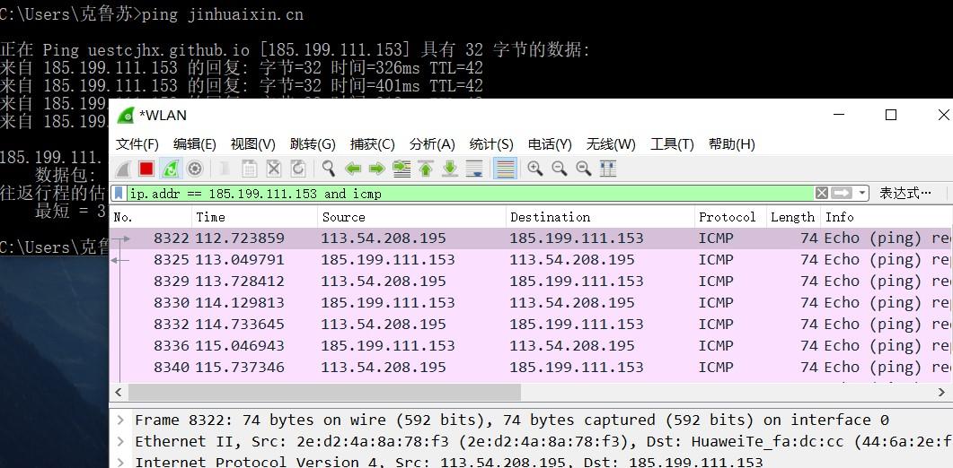 4. 打开cmd窗口,执行ping https://uestcjhx.github.io/