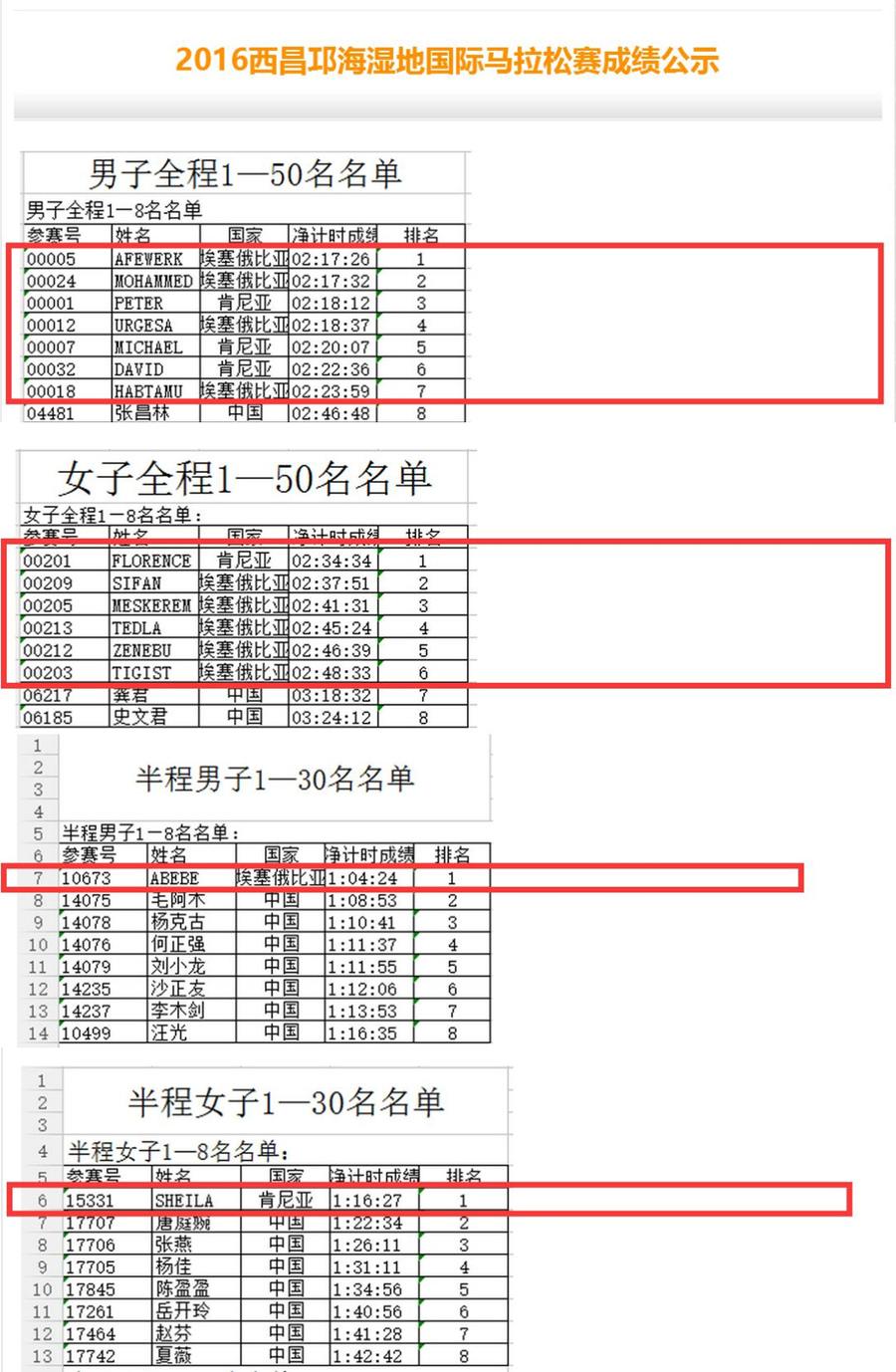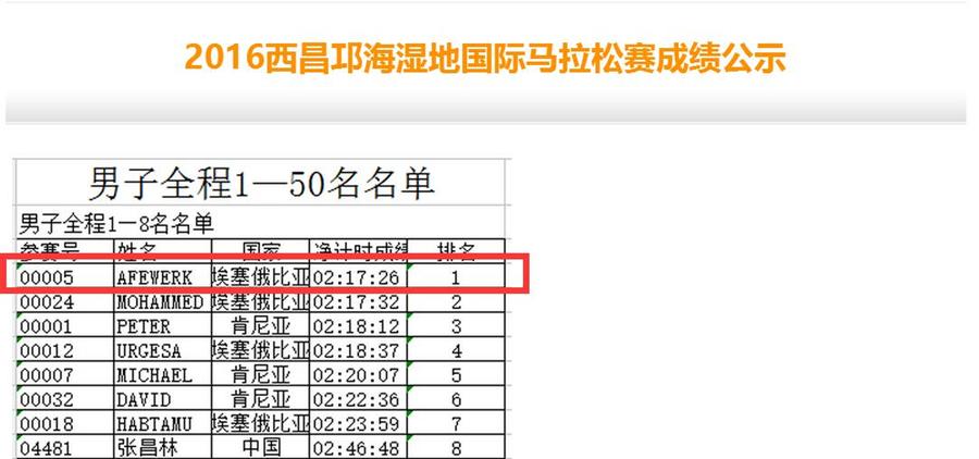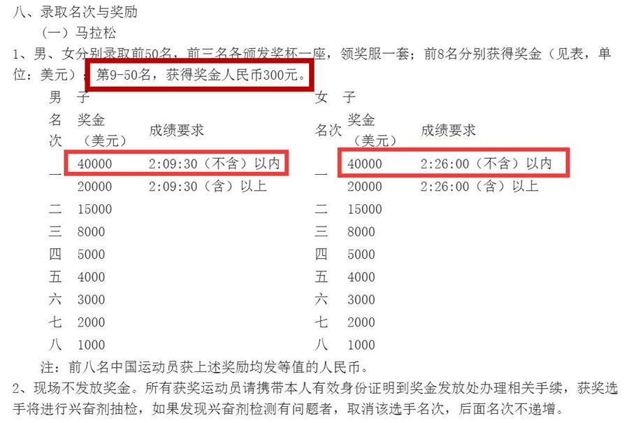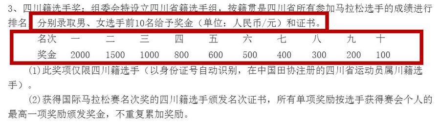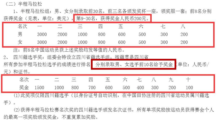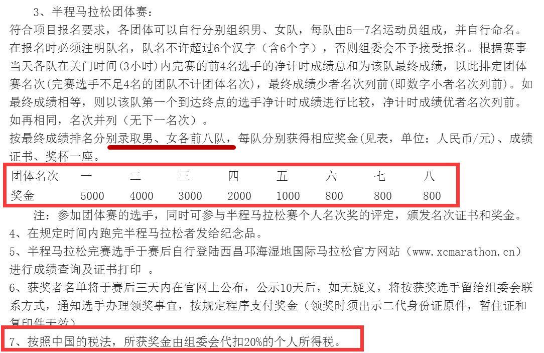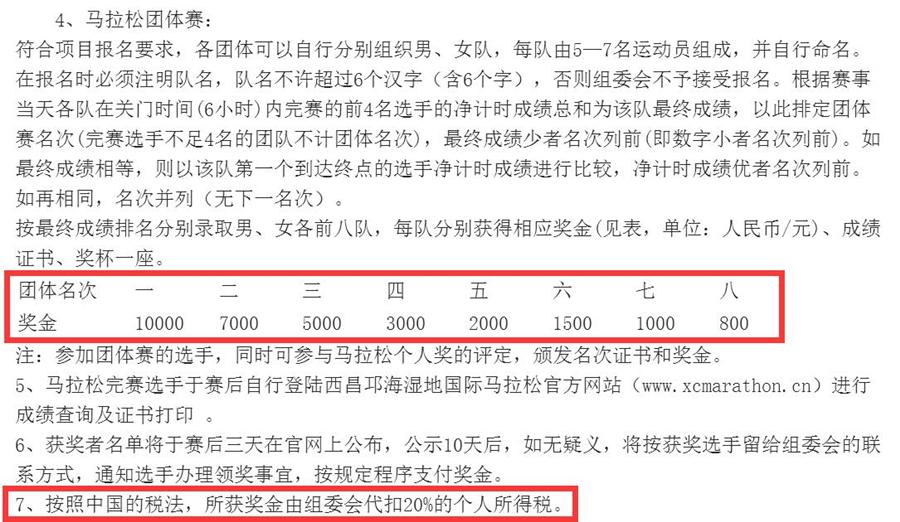 还是以“2016西昌邛海湿地马拉松赛”奖金为例: