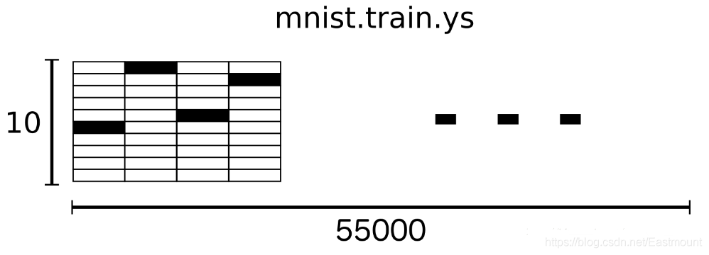 - 训练数据集:55,000个样本,mnist.train