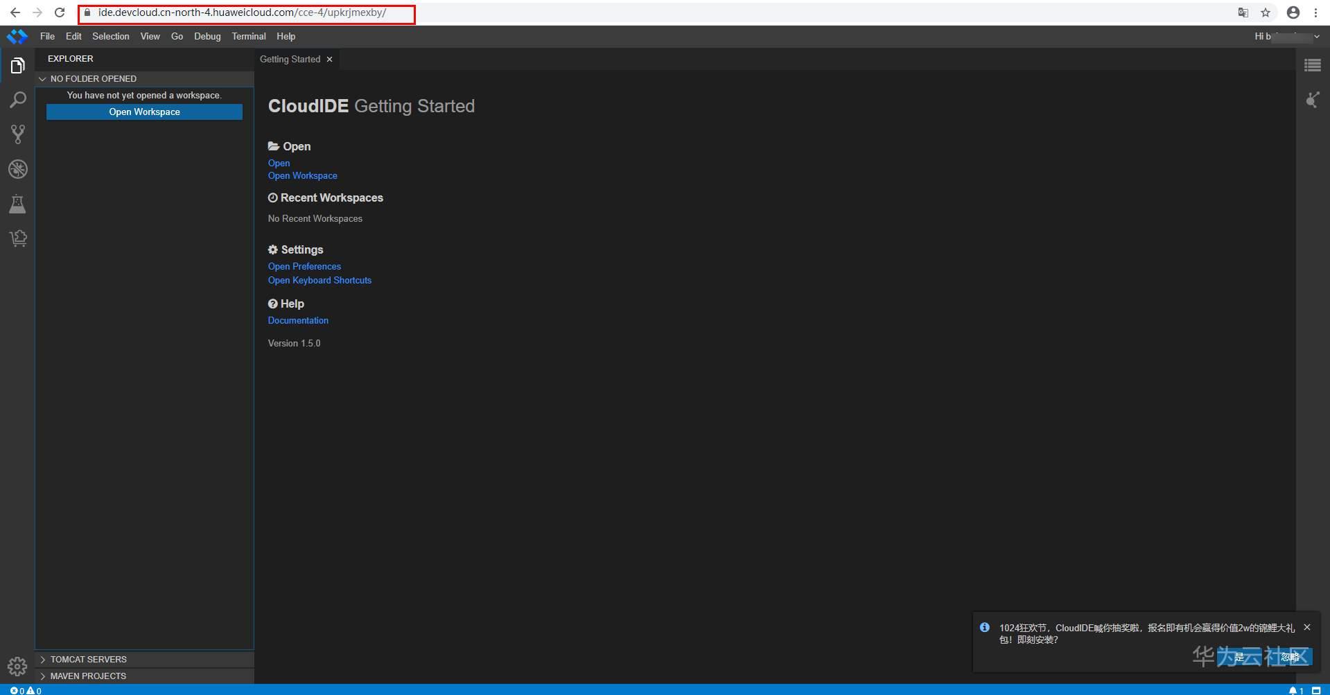 通过浏览器访问返回参数中的link地址,可直接打开IDE实例,进行编码开发。