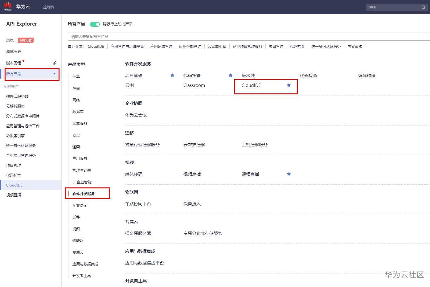 在API Explorer中点击CloudIDE。