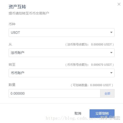 不同的是,这次是从币币账户,转到法币账户。输入数量,点击立即划转