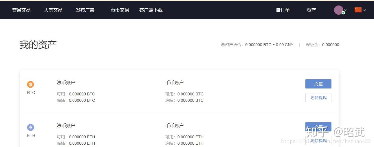 点击右边的资产按钮,如果你成功购买了USDT 资产里会显示相应余额