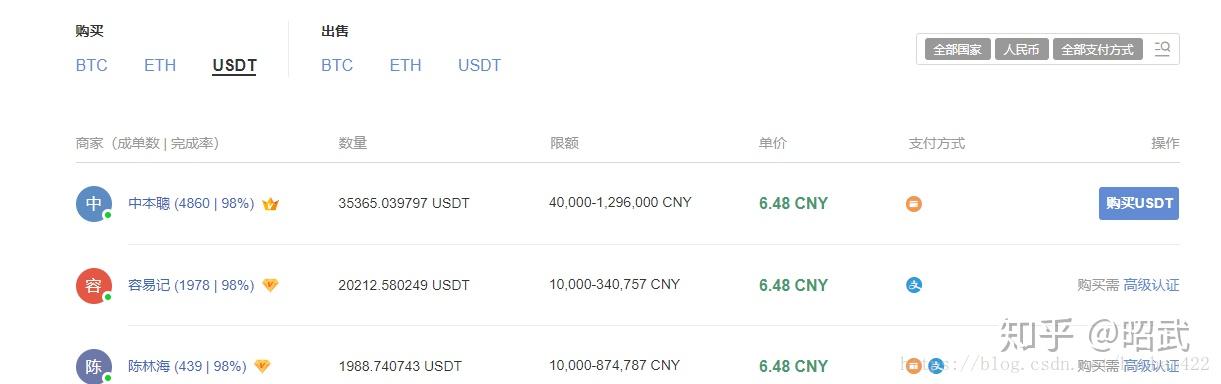 下面是法币交易页面 以USDT为例
