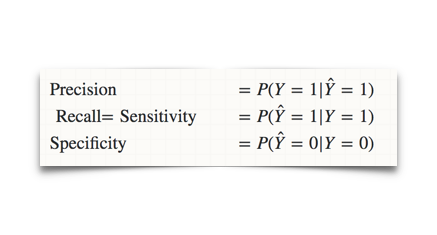 看出来没有,sensitivity和specificity是条件于真实label Y的概率的。我们讲这个叫条件概率嘛。那么意思就是说,无论Y的真实概率是多少,都不会影响sensitivity和specificity。也就是说,这两个metric是不会受imbalanced data 影响的,那就很客观了啊,是不是!而precision呢,就会随着你的测试集里面的正反比例而变化哦。