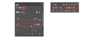 8.在色彩倾向方面做一些调整,让整个画面偏粉一点。新建一个矩形图层,色值为de2baf,在属性面板里,蒙版——羽化改为97,图层混合模式为线性减淡,不透明度76%(混合模式也可以根据画面自行调节);