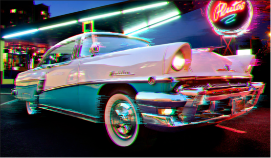 3. 复制刚刚的图层,向右移动,这时,能够看到图像出现了通道错位的效果;