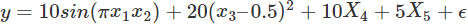 Y = (10 * np.sin(np.pi*X[:,0]*X[:,1]) + 20*(X[:,2] - .5)**2 +