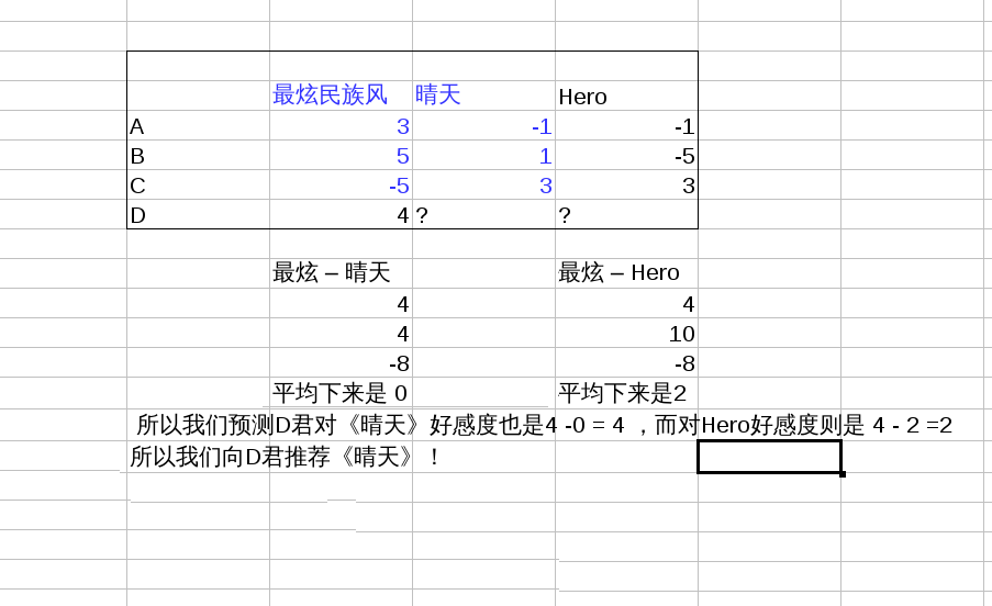 假设我们对新来的D君,只知道她喜欢最炫民族风,那么问题来了,给她推荐啥好咯?