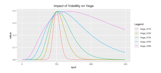 - vega是期权价格对隐含波动率的敏感度,对spot的二阶统计量