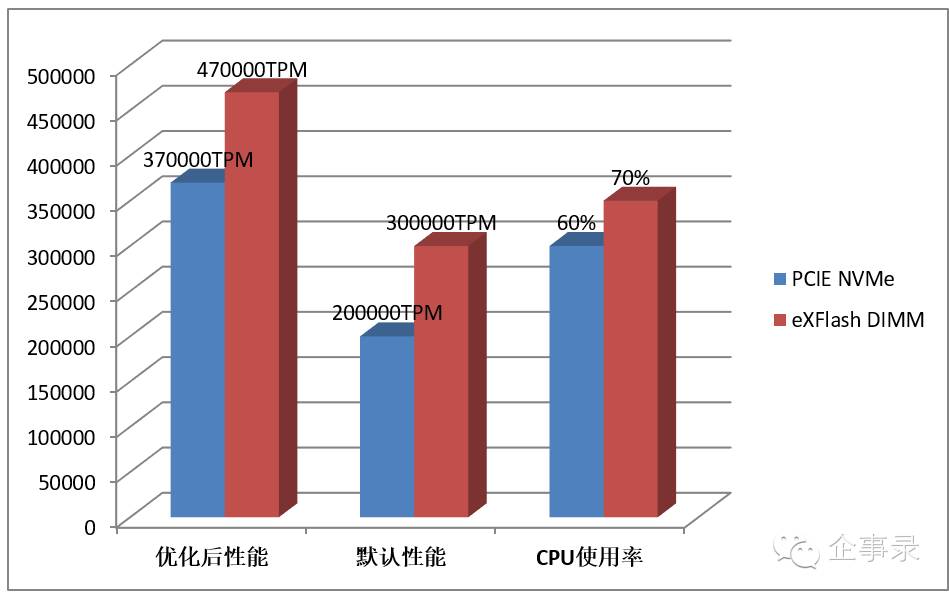 对于绝大多数缺少DBA人才的公司而言,系统默认状态下的Oracle数据库性能存在巨大的优化空间,在企事录实验室,我们通过关闭系统盘日志记录回写等减少I/O的措施后,联想X6 在 PCIe(NVMe)SSD的驱动下,测试用Oracle 12C的性能从20多万TPM上升到37W TPM,当然,这里还存在很大的优化空间,因为此时的CPU占有率也只有50~60%,如果更换更高主频的Xeon E7-8890 v3,相信性能会更高。