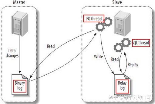 (3)同时主节点为每个I/O线程启动一个dump线程,用于向其发送二进制事件,并保存至从节点本地的中继日志中,从节点将启动SQL线程从中继日志中读取二进制日志,在本地重放,使得其数据和主节点的保持一致,最后I/OThread和SQLThread将进入睡眠状态,等待下一次被唤醒。