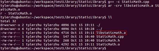 ar -crv libstaticmath.a StaticMath.o