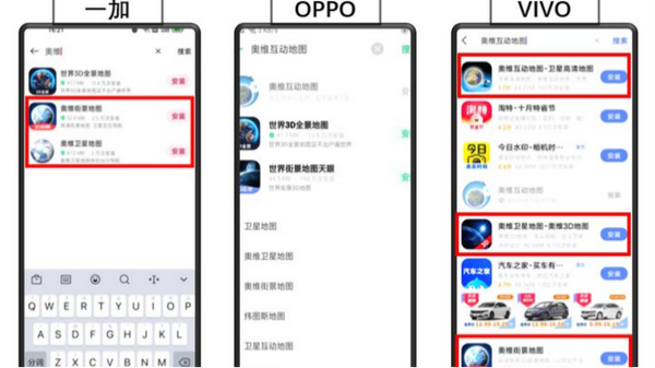 首先说明,奥维软件已暂时下架,目前在华为、小米、oppo等各大厂商的应用商店里,均无法搜到正版的奥维互动地图。搜出来的均为盗版!如下: