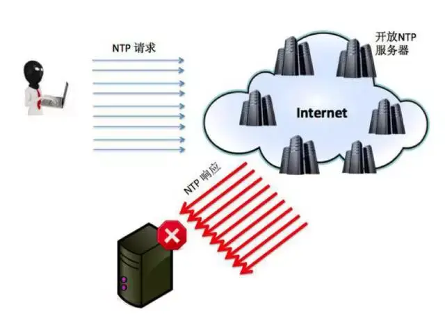 NTP是标准的基于UDP协议传输的网络时间同步协议,由于UDP协议的无连接性,方便伪造源地址。攻击者使用特殊的数据包,也就是IP地址指向作为反射器的服务器,源IP地址被伪造成攻击目标的IP,反射器接收到数据包时就被骗了,会将响应数据发送给被攻击目标,耗尽目标网络的带宽资源。一般的NTP服务器都有很大的带宽,攻击者可能只需要1Mbps的上传带宽欺骗NTP服务器,就可给目标服务器带来几百上千Mbps的攻击流量。