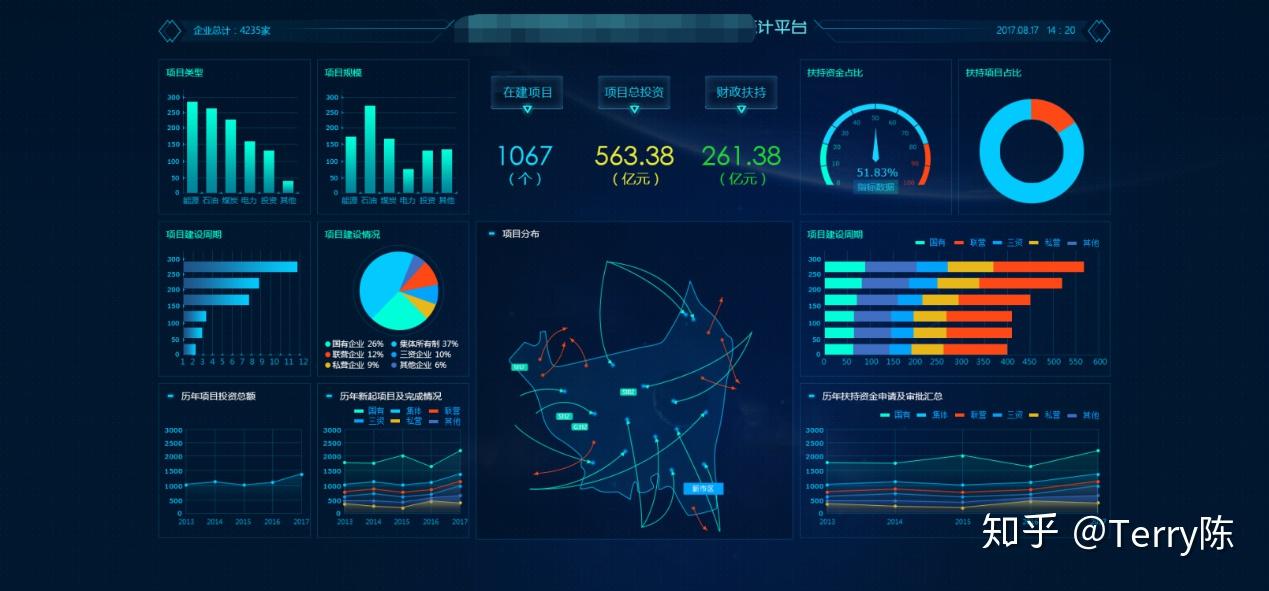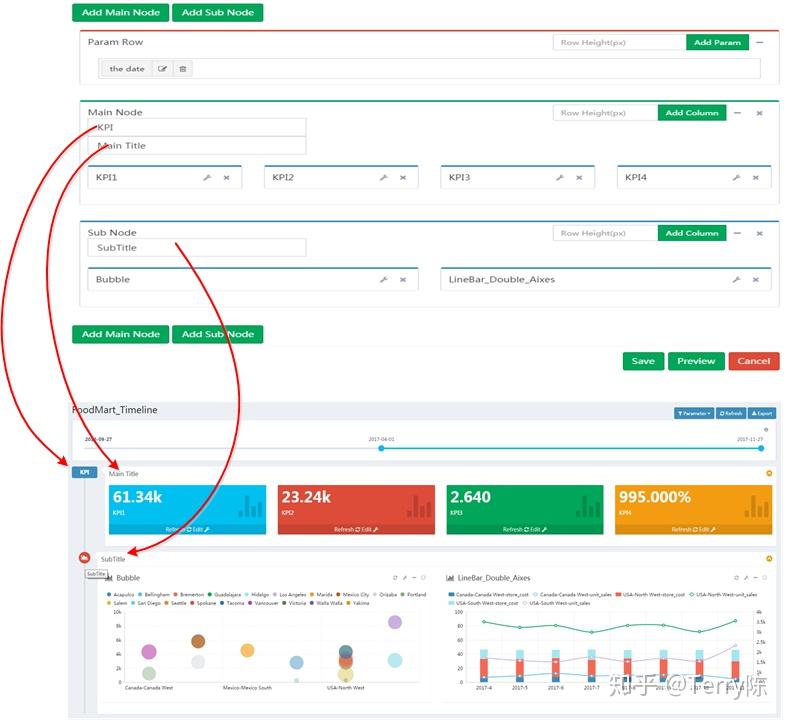 可以通过多维分析拖拽图表来组织 Dashboard,根据指定(或自定义)布局生成,同时可以使用全局参数进行数据过滤分析。