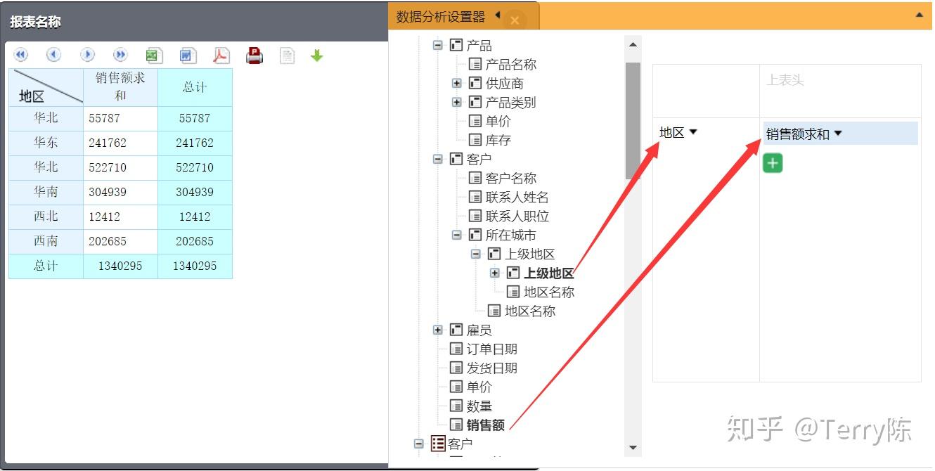 润乾报表提供的多维分析功能与 Superset 类似,通过在页面上拖拽维度和指标进行数据查询,同时可以进行切片和旋转等操作。润乾报表允许用户直接基于文件分析,也可以编写 SQL 进行数据查询生成图表,同时为了保证性能还可以使用自有的私有存储格式。