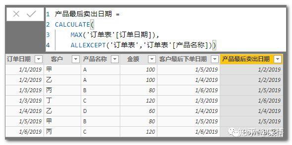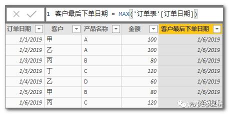 最后下单日期=MAX(\'订单表\'[订单日期])