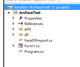 我们打开Visual Studio,选择C#语言,建立Winfrom项目,项目名称为FaceDetectDemo,路径随便选。立项后,项目结构如图所示: