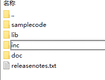 命名很清晰,我这里只需要简单说一下。lib中的dll是要拷贝到你的运行目录中的,doc中的PDF相当重要,是SDK的入门指南。samplecode和inc是供C++调用时候用到的参考源码和头文件。这些都是比较重要的。