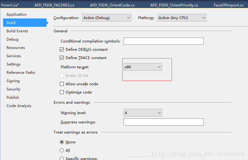 另外我们的SDK是32位系统的,所以我们还需要设置编译选项为x86.