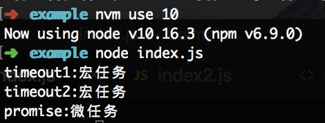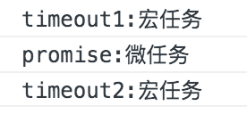 setTimeout (function () { console.log ('timeout1:宏任务'); new Promise (function (resolve, reject) { resolve (); }).then (() => { console.log ('promise:微任务'); }); }); setTimeout (function () { console.log ('timeout2:宏任务'); });