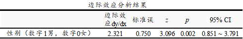 边际效应分析结果:此表格在计量研究中使用较多,通常可忽略。
