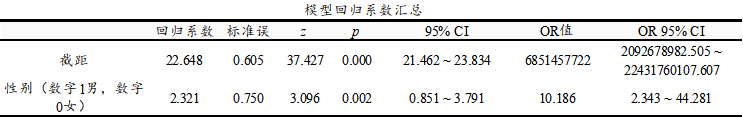 模型回归系数:展示模型的回归值等,结果中的OR值及OR 95%CI值,仅在二元logit,二元probit,泊松回归或负二项回归模型时才有意义;