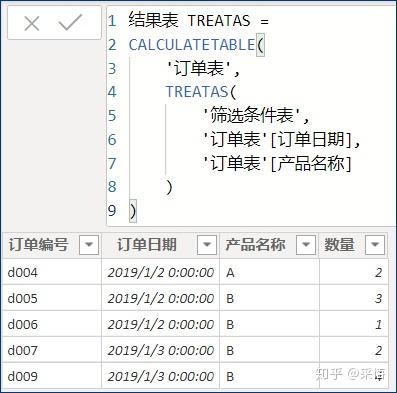 --------TREATAS( \'筛选条件表\', \'订单表\'[订单日期], \'订单表\'[产品名称])--------