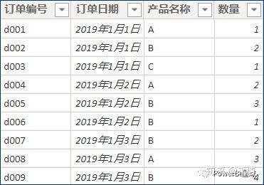 假设原始数据记录为一张模拟的订单表: