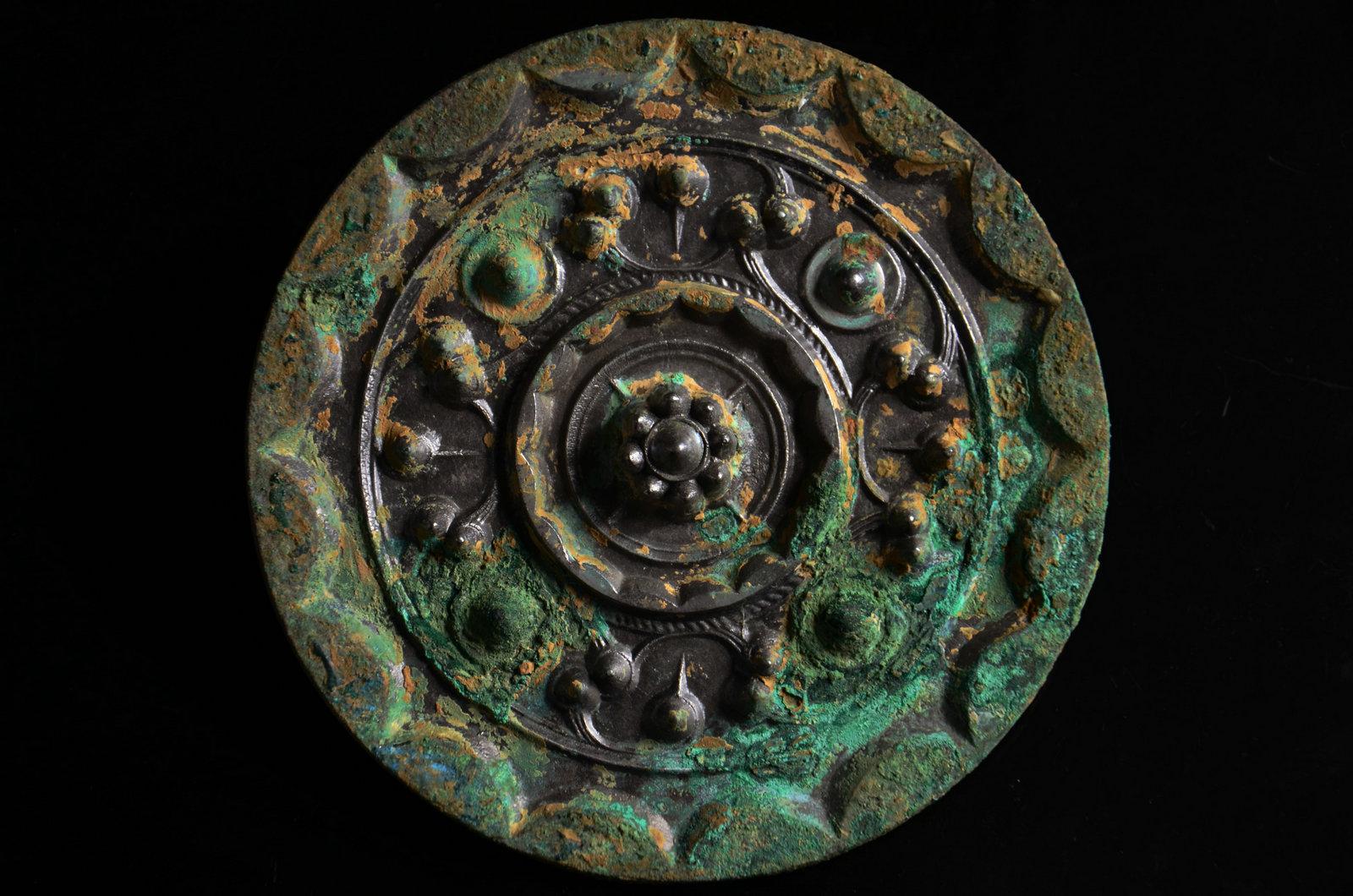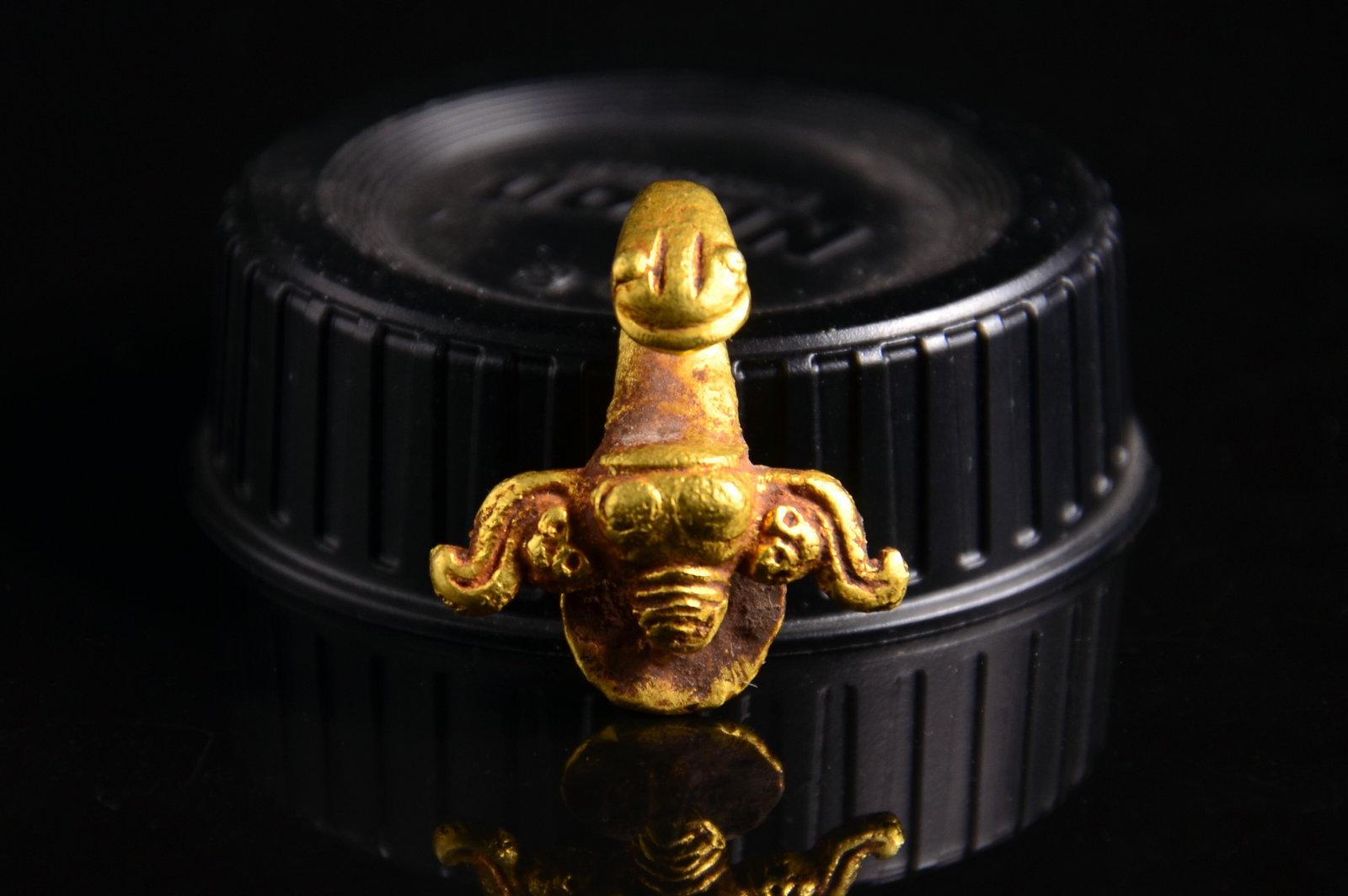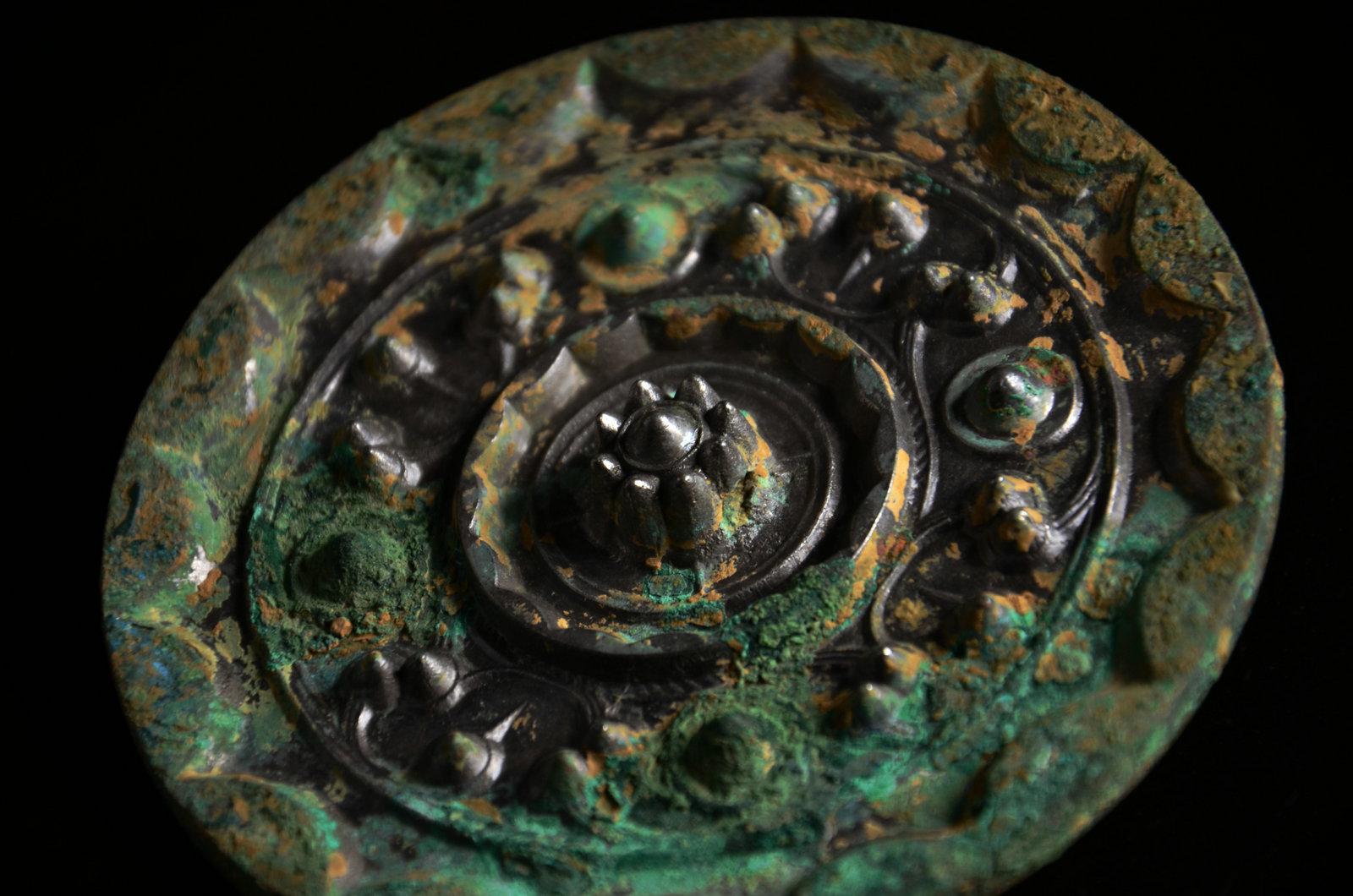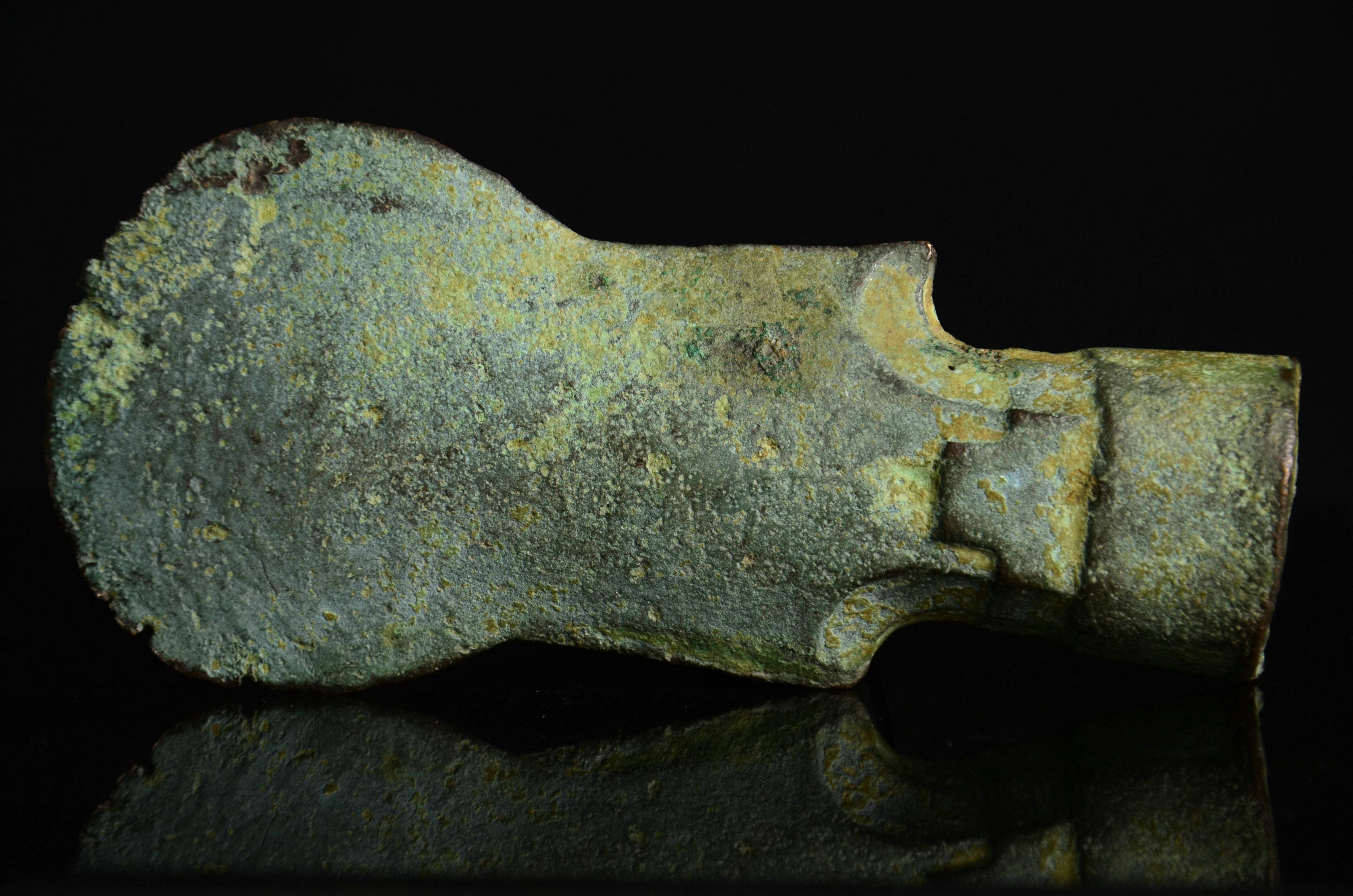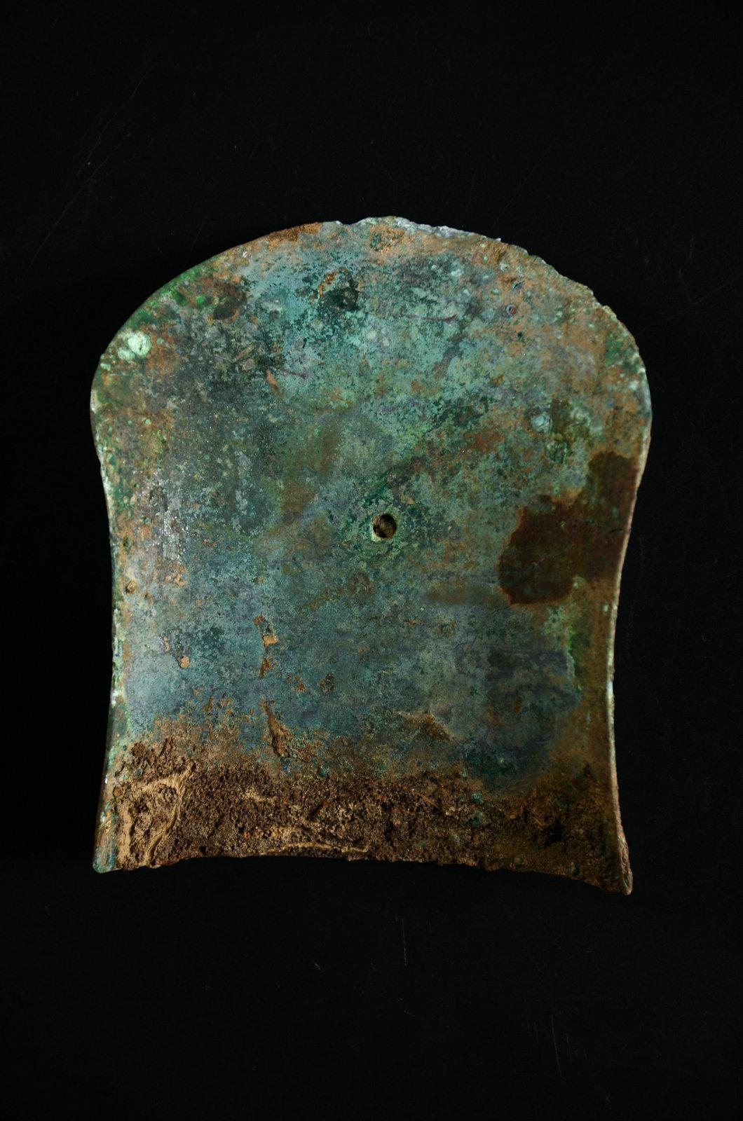 这个没太多好说的东西,就是年份早和少见。这种锤的形制,有学者认为是受欧洲罗马时代权杖的影响。迄今无定论。绿锈皮壳下,鎏金依然可见,所以不清了,就这样了吧。