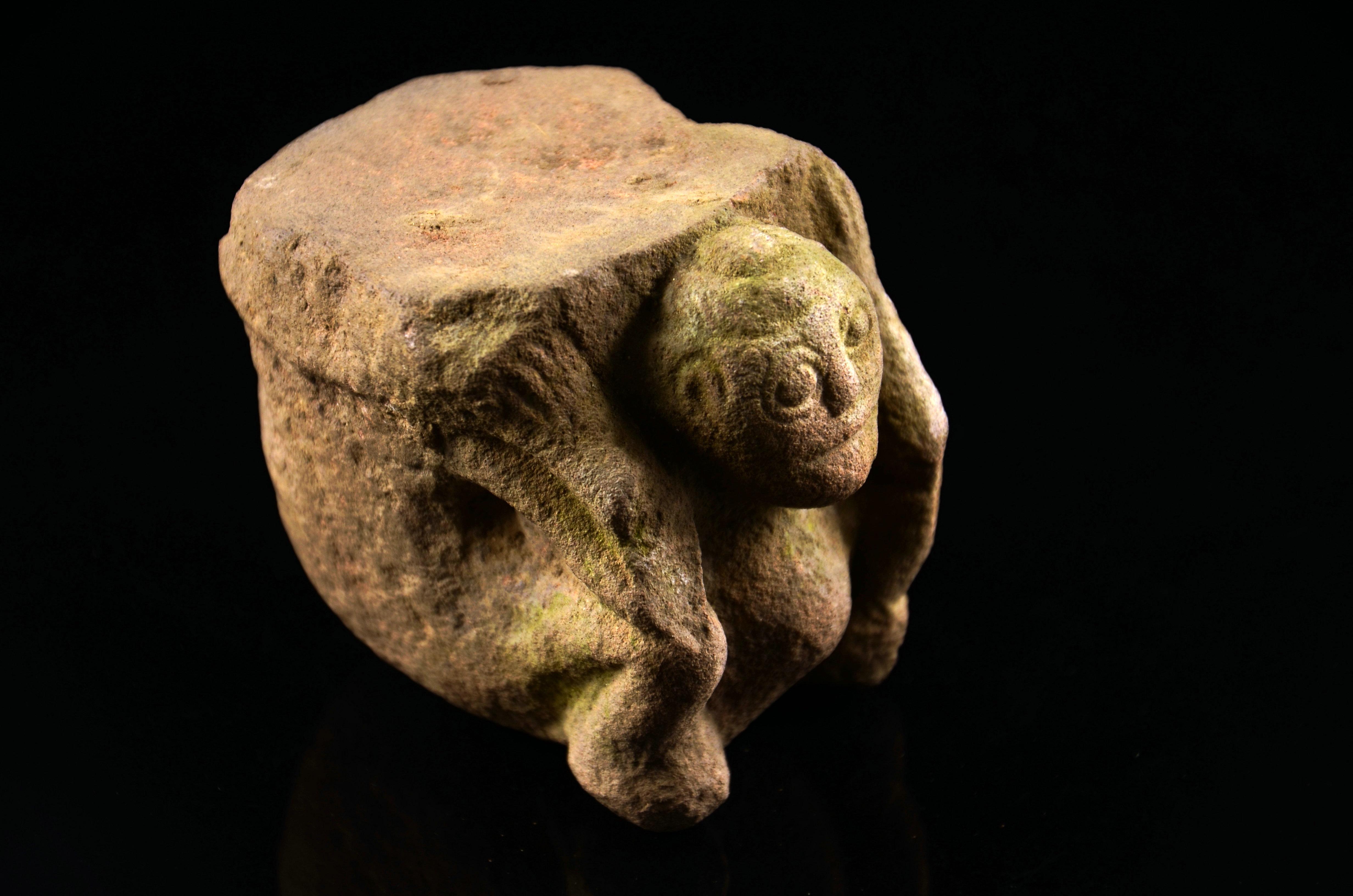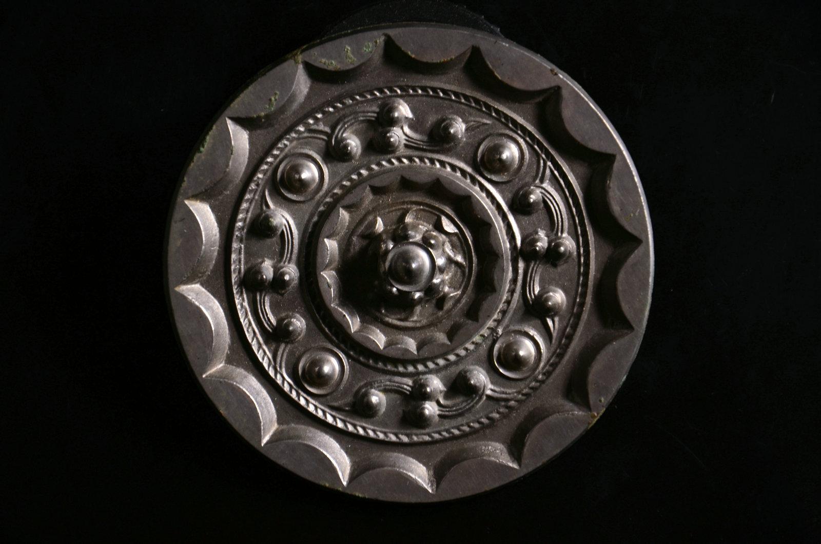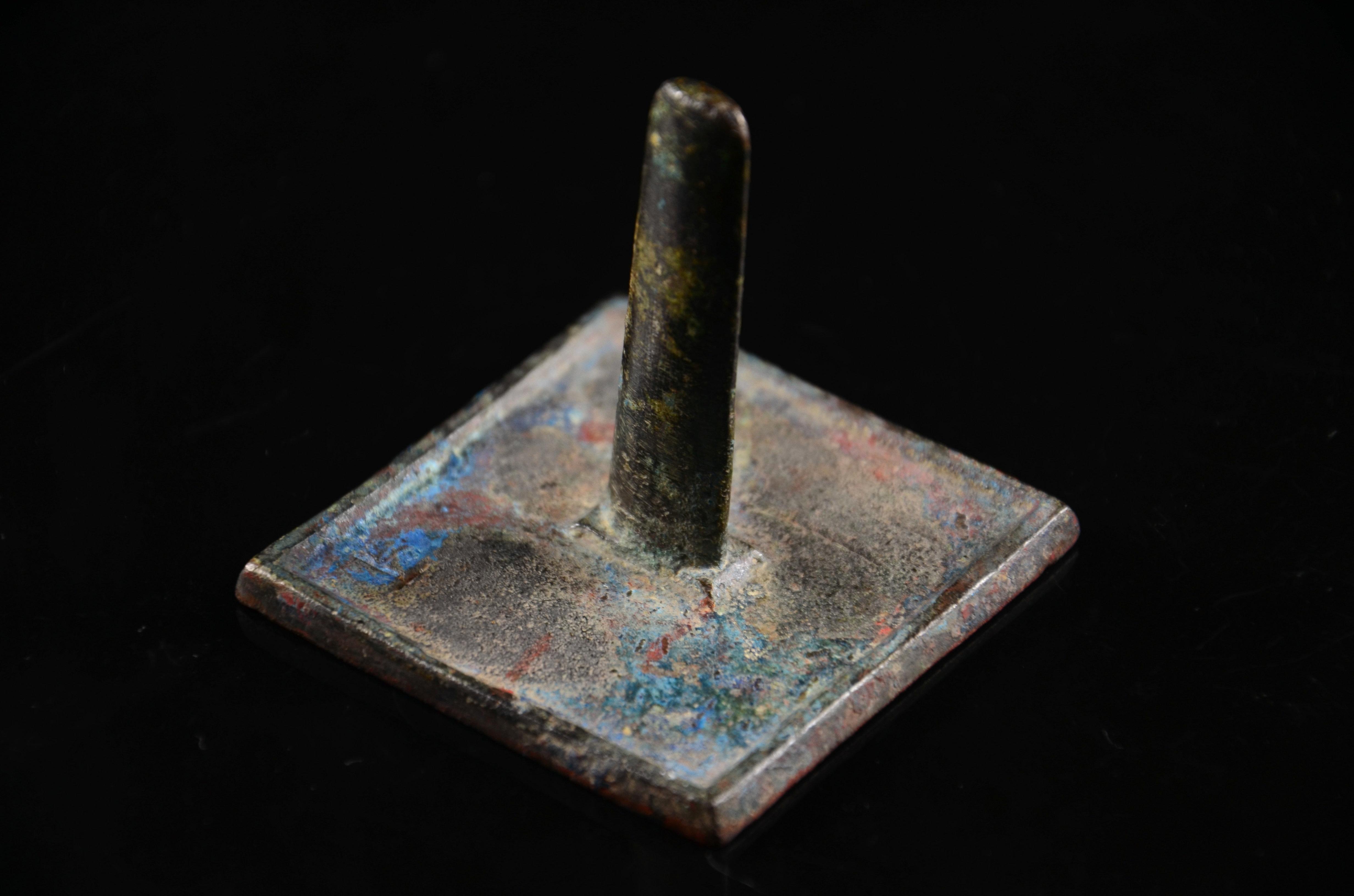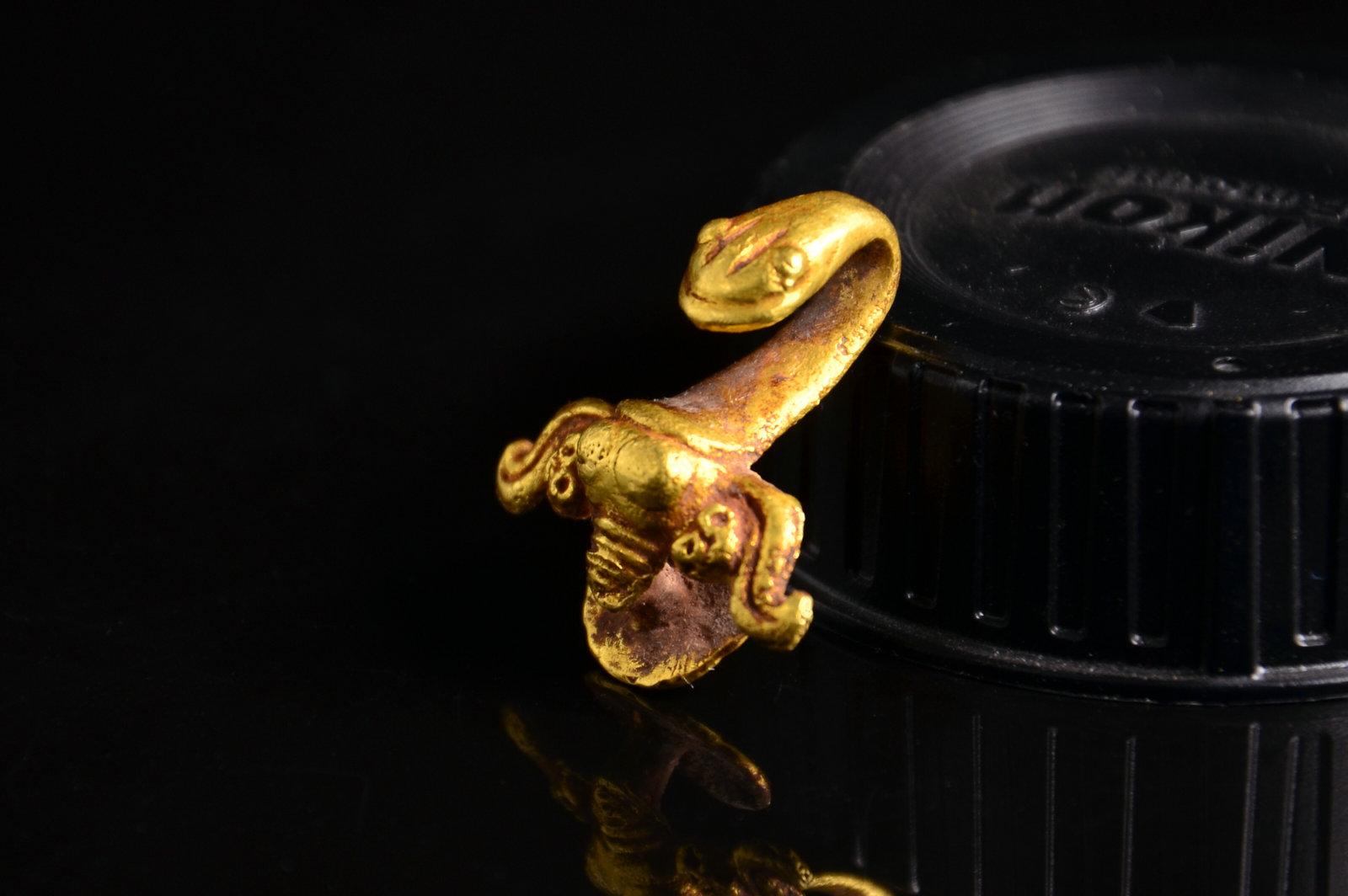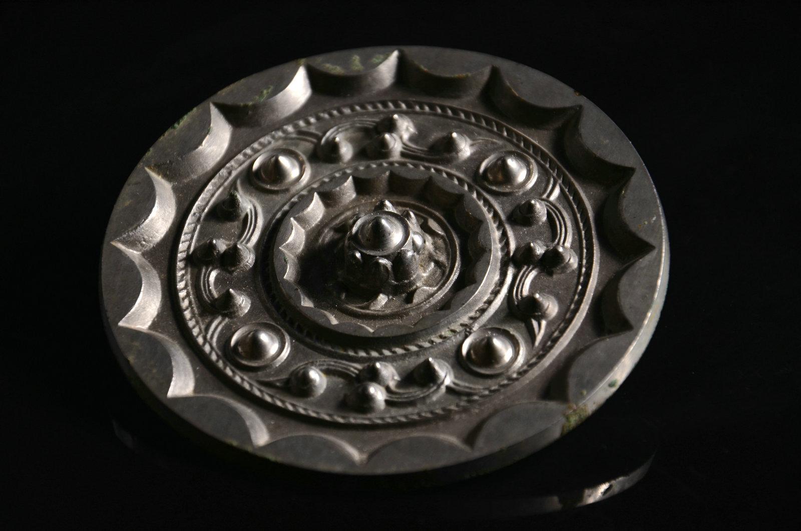 这个没太多好说的东西,就是年份早和少见。这种锤的形制,有学者认为是受欧洲罗马时代权杖的影响。迄今无定论。绿锈皮壳下,鎏金依然可见,所以不清了,就这样了吧。